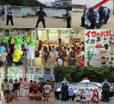 9月4日 今日は警察署の方に来ていただき不審者が保育所に侵入した時を想定した訓練しました。職員は、警察にホットライン通報・不審者対応・子どもの誘導の仕方を見ていただき指導もしてもらいました。子どもたちは、パトカーと写真を撮った後紙芝居を見せてもらい、「いかのおすし」という防犯用語を教えていただきました。
