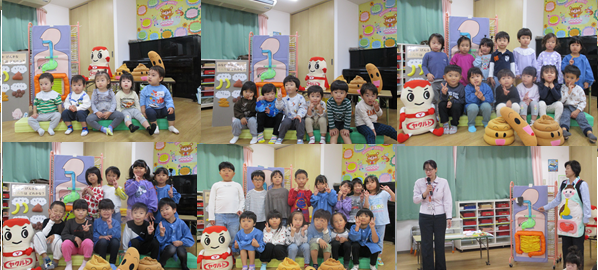 10月22日 ヤクルトさんに来ていただきました。「早寝・早起き・朝ごはん」など規則正しい生活の大切さを学びました。最後はヤクルトマンと記念写真。みんな大喜びしていました。