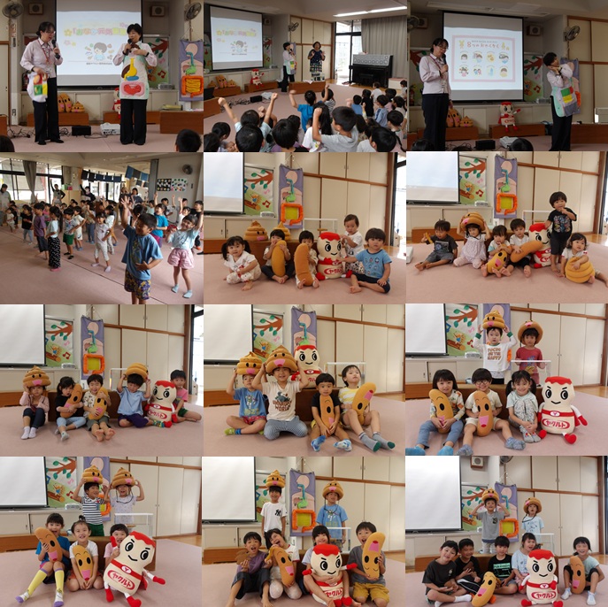 10月3日 みんなのおなかの健康を守るために良いうんちや悪いうんちの見分け方や、好き嫌いをすると悪い菌が増えてしまうなど大切なお話しを聞くことができました。「おなか元気体操」では、体操を覚えているお友だちのいて、みんな元気いっぱい踊っていました。
