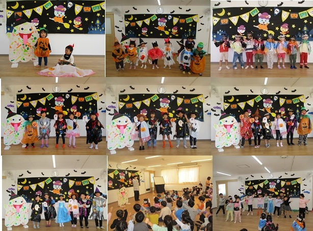好きな衣装を着て仮装を楽しんだり、ハロウィンにちなんだ手遊びやパネルシアター、ダンスをを楽しみました。お菓子を配るのはぱんだ組でした。今年も、ぱんだ組がハロウィンパーティーを盛り上げてくれました。