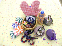手芸 クリーニング屋さんから不用タオルを分けていただき雑巾を縫製し相生市総合福祉会館等にて販売しています。 アクリル毛糸の手編みたわしを野の草園にて販売してます。