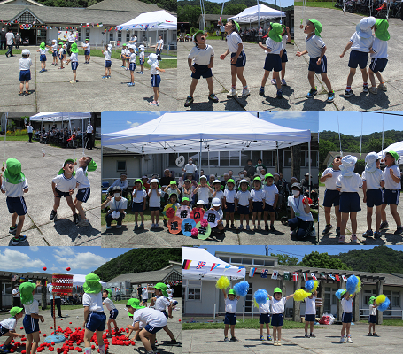 子どもたちは、ラジオ体操・パン食い競争・玉入れ・ダンスを楽しんでしてきました。利用者の方も紅白の分かれて真剣勝負・・・「がんばれー」と、あちらこちらで大声援が聞こえていました。子どもたちの可愛らしさに沢山の拍手をいただきました。帰りのバスの中でも「おもしろかったな・・・」「また行きたいな」と話が盛り上がっていました。