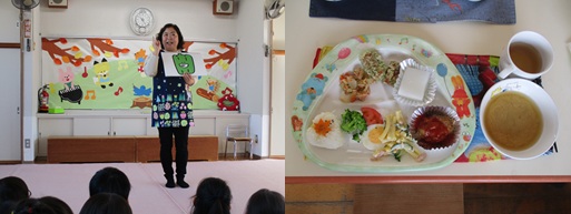 11月6日 11月生まれの友だちの誕生会をしました。11月生まれの友だちに質問したり歌のプレゼントをしたりしました。担当の先生からはスケッチブックシアター「とんとんどなたです 〜秋バージョン〜」と「やおやさん」を見せてもらいました。