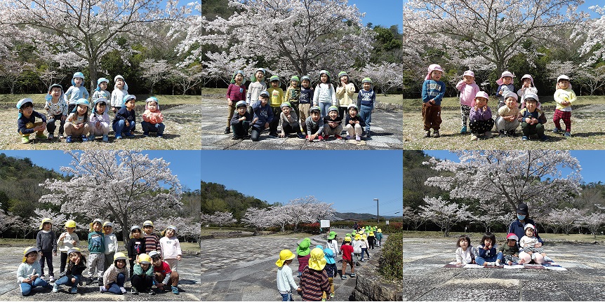 4月10日、岩屋谷公園の桜を見に行きました。今年は例年よりも桜が咲くのが遅く、4月に入っても長く満開の桜を見ることができました。子どもたちも風で舞い散る花びらを拾い集めたりしながら楽しんでいましたよ。