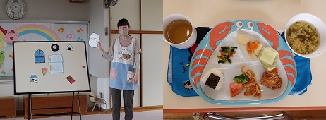 5月22日 5月生まれのお友だちの誕生会をしました。お友だちからの質問に答えたり誕生日の歌をうたってもらったりし、担当の先生からは「くいしんぼうおばけ」のパネルシアターを見せてもらいました。先月の誕生会をお休みしていた4月生まれのお友だちも一緒にお祝いをしてもらいました。
