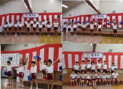 愛老園・椿の園の合同敬老会に参加しました。手作りのカレンダーをプレゼントしたり、歌やダンスを披露したりしました。「恥ずかしかったけど、踊ったよ。」と話す子もいました。
